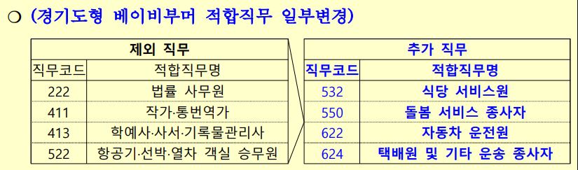 경기도에서는 베이비부머(40-64세)와 중소/중견기업에게 더욱 많은 혜택을 제공하기 위해 경기도 적합직무 고용지원금 사업의 참여 기준을 아래와 같이 확대하였다.