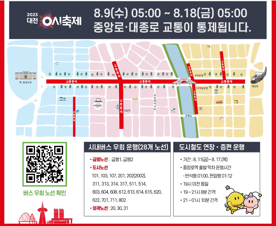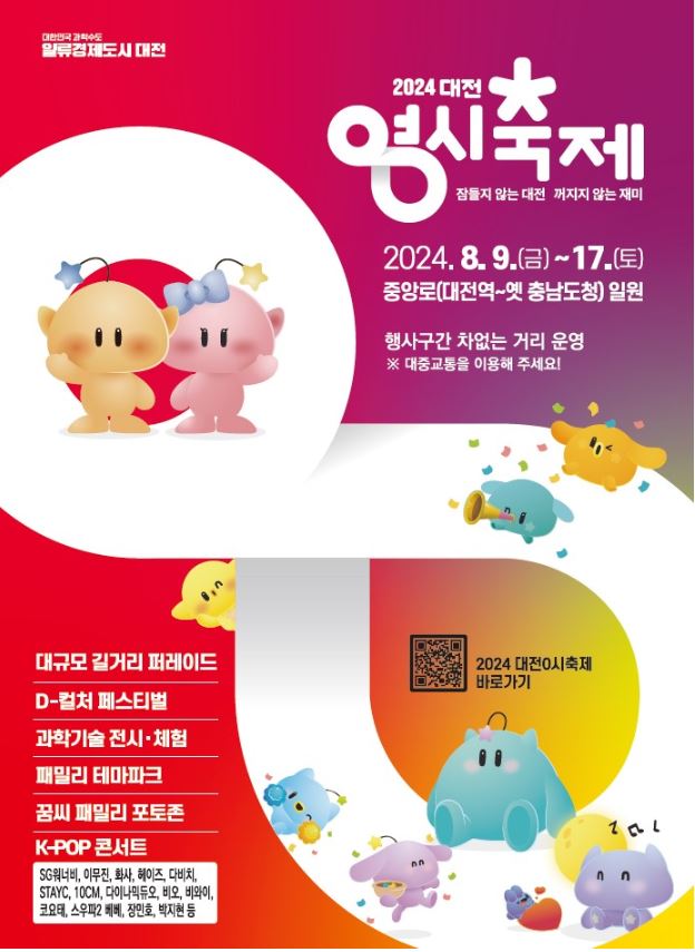 대전 0시 축제는 8월 9~17일까지 대전역에서 옛 충남도청 구간 1km 도로를 통제하고 중앙로와 원도심 일대에서 열린다.