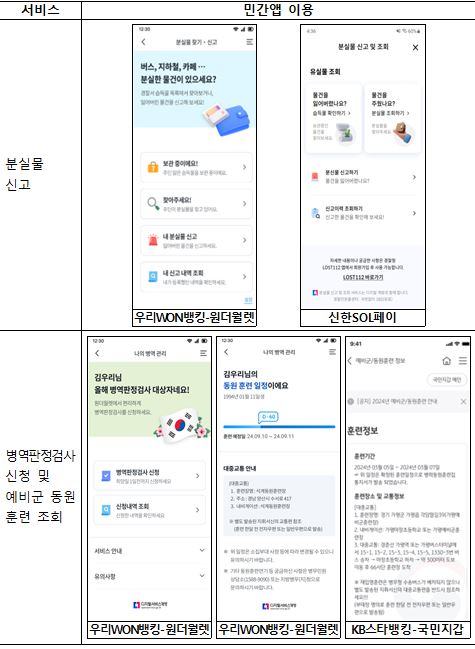 | 3 | 분실물 신고 | 우리WON뱅킹, 신한SOL페이 |