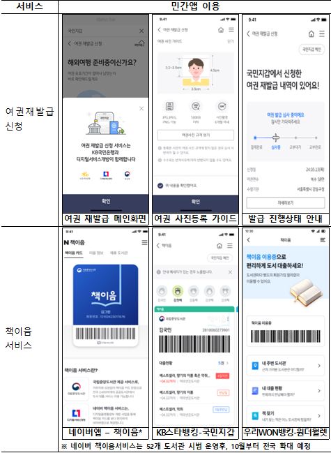 ※ 현재 KTX·SRT 승차권 예매, 자동차검사 예약, 국립수목원 예약, 국립자연휴양림 예약, 문화누리카드 등 9종 서비스도 네이버, 카카오 T, 토스, KB스타뱅킹 등에서 이용 가능