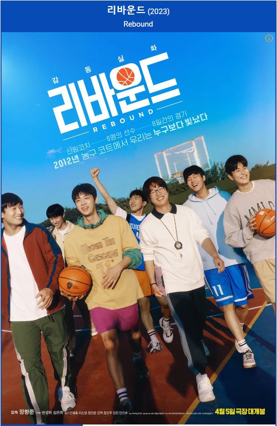 "리바운드"는 2023년 4월 5일에 개봉한 스포츠 영화로, 부산중앙고등학교 농구부의 2012년 제37회 대한농구협회장기 전국대회 당시 실제 이야기를 극화했다.