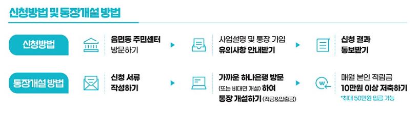 | 내일키움장려금 | - 가입자가 자활근로사업단에 전월 12일 이상 성실 참여하고 10만원 저축 시 20만원 매칭 지원 |