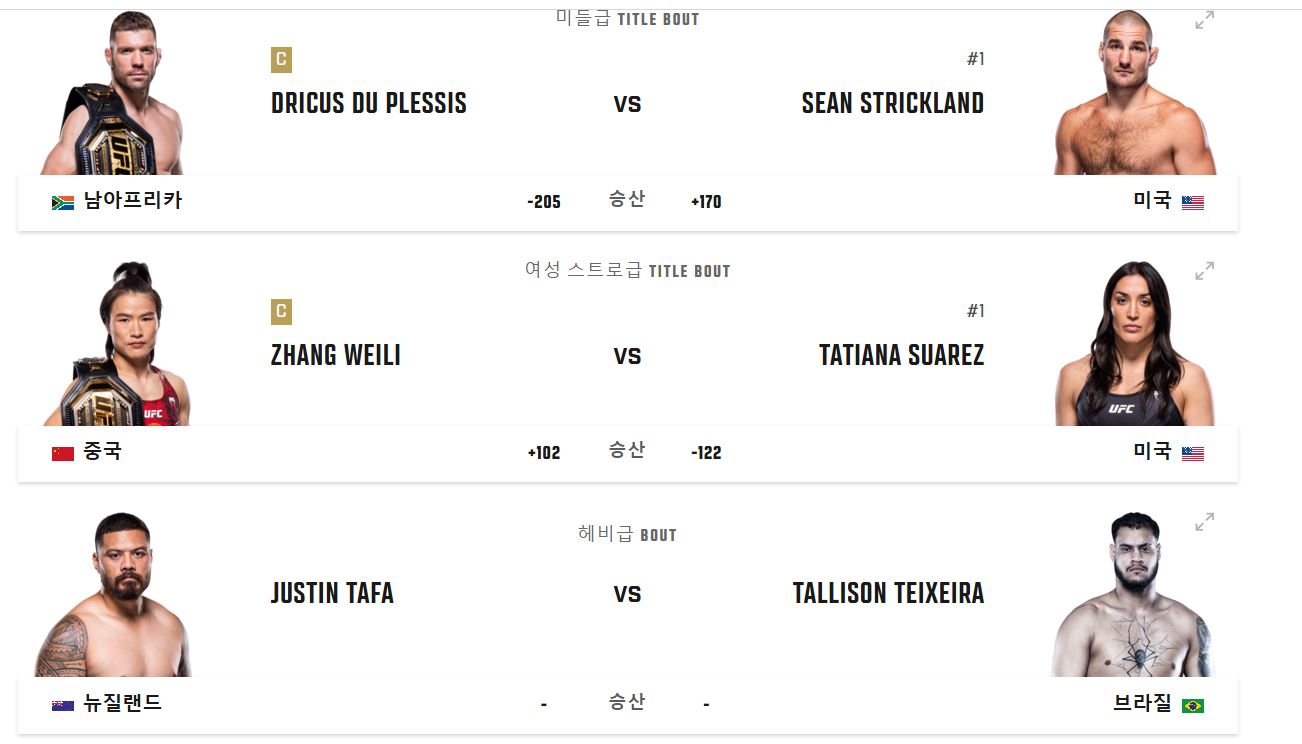 | 미들급 타이틀전 | 두 플레시스 VS 스트릭랜드 |