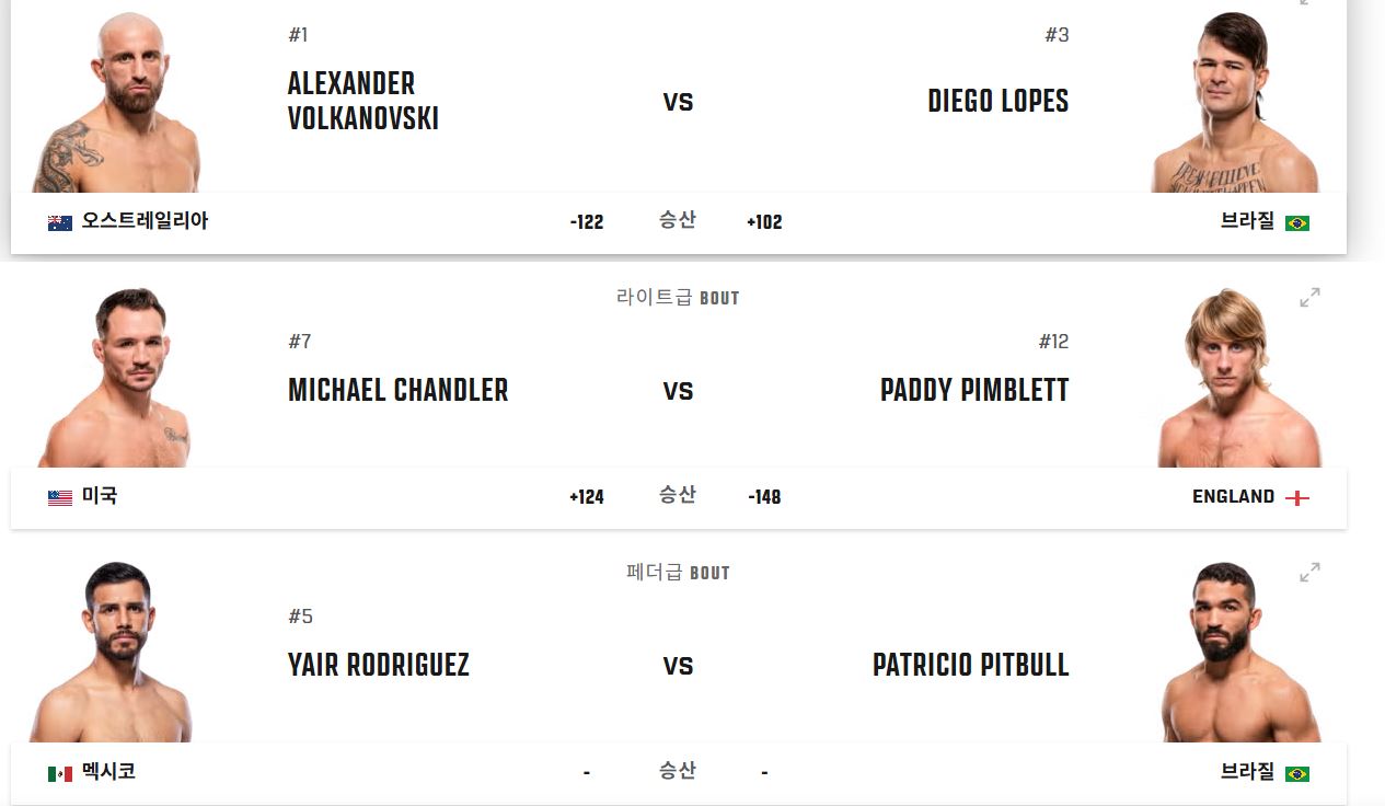 | 라이트급 | 챈들러 VS 핌블렛 |