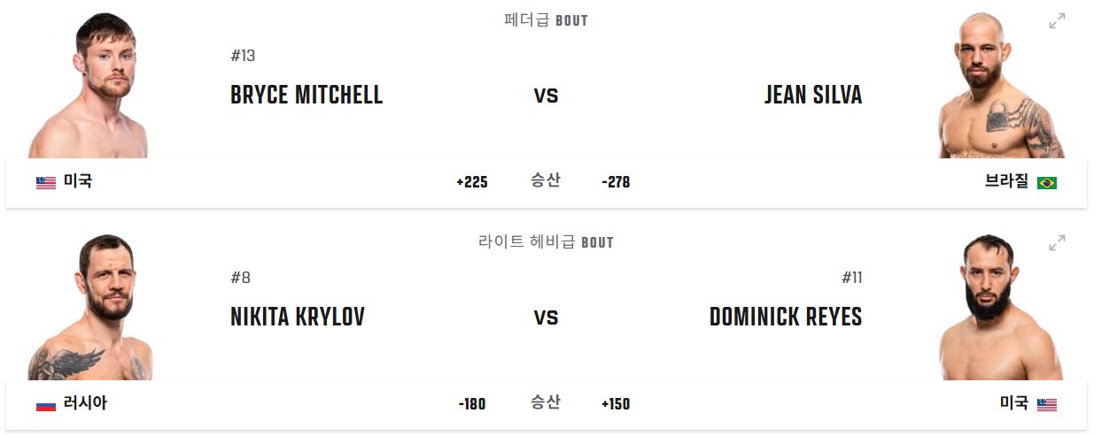 | 페더급 | 미첼 VS 실바 |