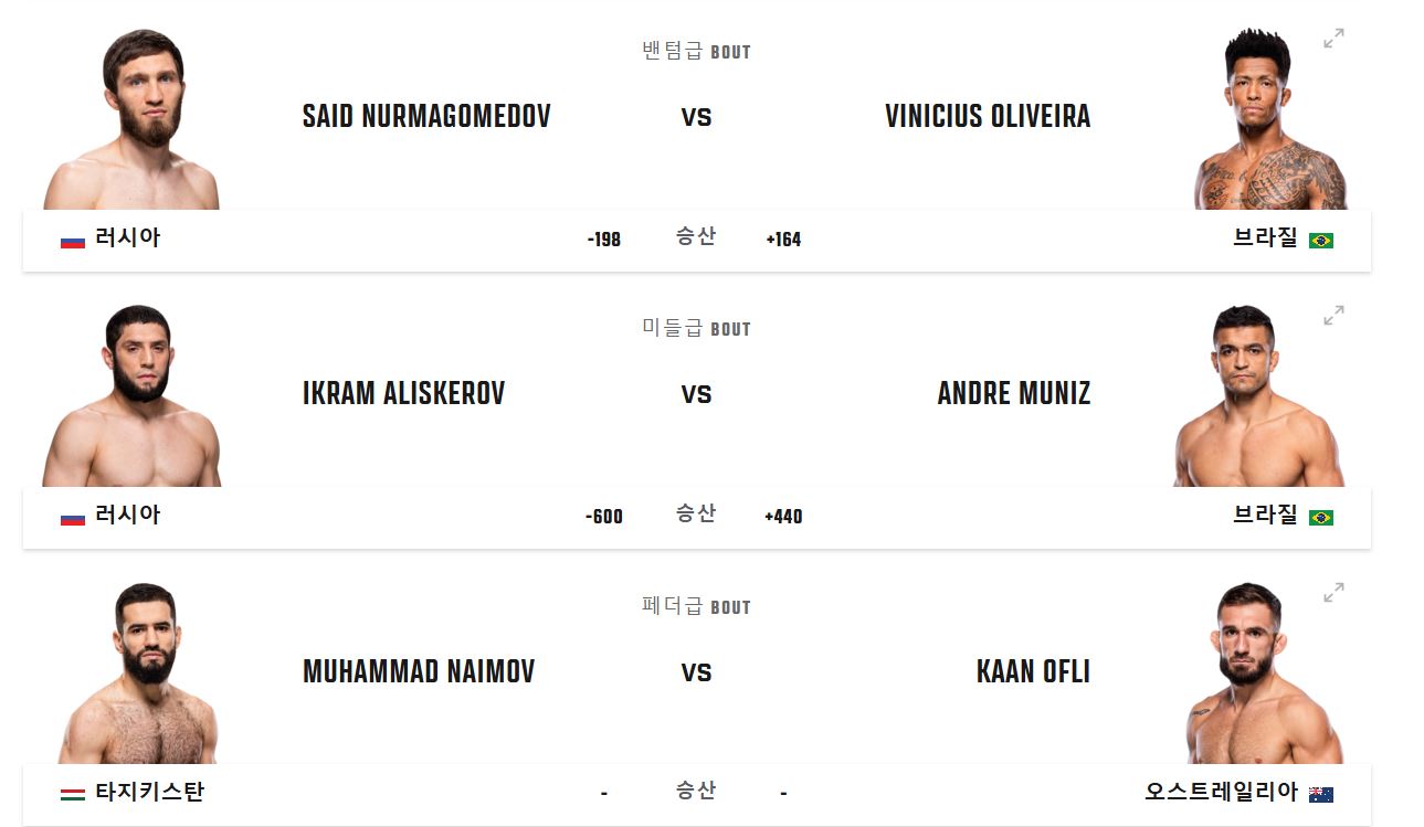 | 미들급 | IKRAM ALISKEROV VS ANDRE MUNIZ |