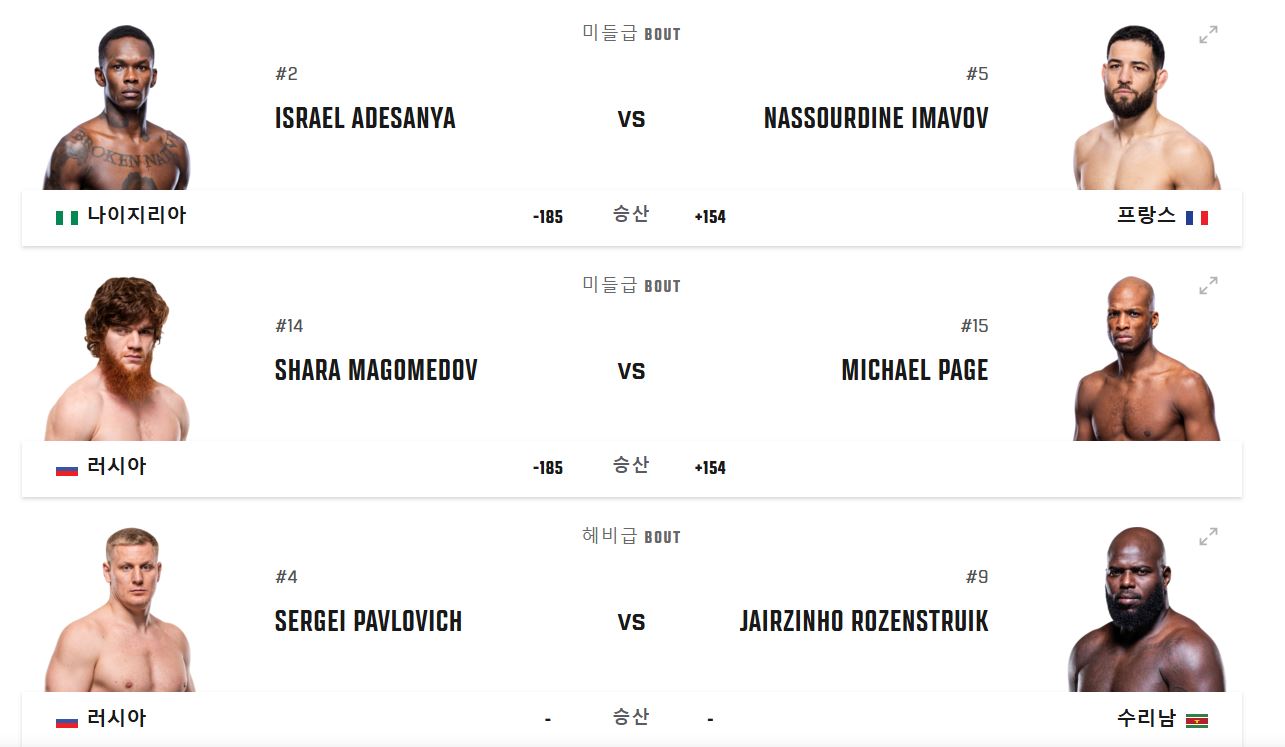 | 미들급 | ISRAEL ADESANYA VS NASSOURDINE IMAVOV |