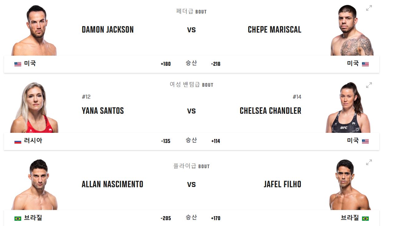 | 여성 밴텀급 | 산토스 VS 챈들러 |