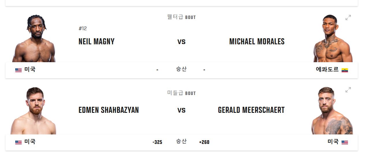 | 웰터급 | 매그니 VS 모랄레스 |